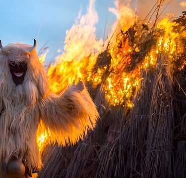 The masks themselves are carefully hand-carved from fűzfa (willow wood) and painted with fearsome expressions, often with exaggerated noses, large teeth, and fiery red eyes. These are paired with heavy cloaks made of sheep’s wool and a variety of accessories including favilla (wooden clappers), kereplő (ratchets), and in some cases, even flaming torches. One of the highlights of the event is téltemetés (winter burial), when a coffin representing winter is set aflame on the banks of the Duna (Danube), symbolically putting an end to the cold season. The főtéren (main square), crowds gather to watch the busók dance, drink pálinka (fruit brandy), eat fánk (doughnuts), and share in the mulatság (festivity) that stretches deep into the night. Children join as kisbusók (little Busós), keeping the tradition alive with innocent mischief, while women in traditional népviselet (folk costume) serve food and sing old songs. The entire town becomes a living folk theatre, with roles passed down through generations, and preparation beginning months in advance.