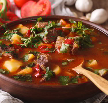 The origins of gulyás go back to the gulyások (cowherds) who roamed the Alföld (Great Hungarian Plain) with their szürkemarha (Hungarian grey cattle), preparing simple, hearty meals with limited resources. These herdsmen developed a method of cooking that was both efficient and flavorful, relying on a cast-iron bogrács, which could be hung over a fire and used to cook large portions of food slowly. The base of the dish was built on hagyma (onion) and zsír (fat), sautéed together before the meat and spices were added. Paprika, introduced in the 18th century, revolutionized the dish, giving it the unmistakable color and flavor now associated with Hungarian cuisine.