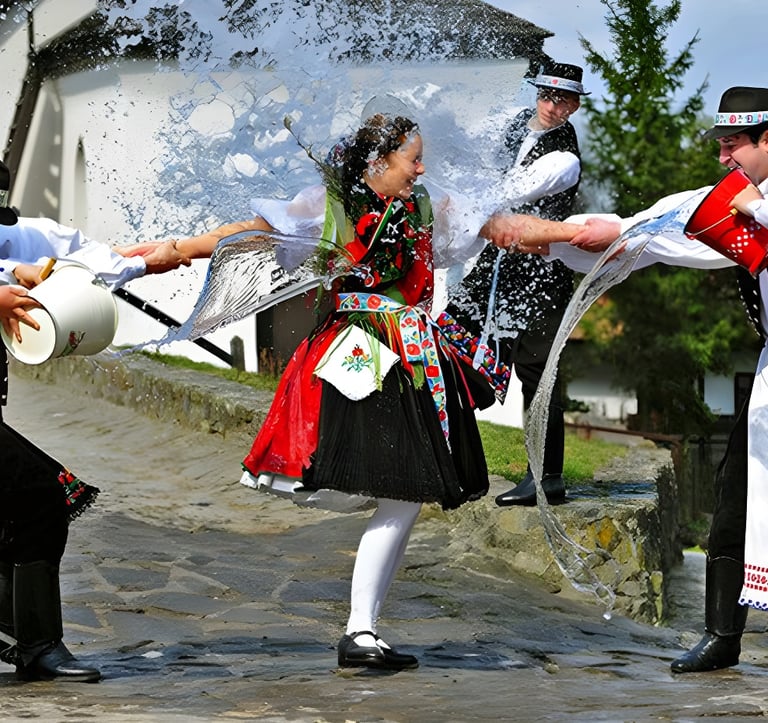 In Hungary, Húsvét (Easter) is more than a Christian holiday—it is a vibrant blend of religious observance, folk ritual, and seasonal celebration that brings centuries-old customs into full bloom. While nagypéntek (Good Friday) and húsvétvasárnap (Easter Sunday) are marked by church services, candlelight, and quiet reflection on the feltámadás (resurrection), the following day, húsvéthétfő (Easter Monday), transforms villages and cities into lively stages of cultural performance. The most iconic of these traditions is locsolkodás (sprinkling), where boys visit girls to sprinkle them with water or perfume, recite locsolóversek (sprinkling poems), and in return receive hand-painted hímes tojás (decorated eggs), chocolate, or in rural areas, shots of pálinka (fruit brandy). This practice, rooted in ancient fertility rites and the symbolism of spring renewal, is still performed with cheerful formality or playful mischief, depending on the age and setting. Men often arrive in groups, sometimes wearing traditional népviselet (folk costumes), carrying old-fashioned szódásüveg (seltzer bottles) or perfume sprayers, and the ritual becomes a performance, both flirtatious and humorous, passed down like an oral poem.