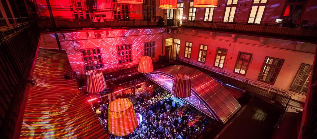 In the bustling epicenter of Budapest’s downtown area, Ötkert occupies a space with deep historical roots, once serving various commercial and civic functions in the city’s vibrant Józsefváros district. Today, the venue has been entirely reimagined as one of Budapest’s most celebrated urban garden bars, fusing elements of ruin-pub charm with modern hospitality flair. With a spacious courtyard lined by ivy-covered walls, glowing globes that hover overhead, and theatrical beams of colorful lighting that trace its corners at night, Ötkert offers a unique juxtaposition of old-world ambience and contemporary nightlife energy. In this transformed space, visitors experience an environment that feels both rooted in the city’s layered past and strikingly modern in presentation. The open-air central hall, represented by skylights and minimal structural intervention, adds a sense of airy expansiveness, while the original masonry and traces of past uses remain visible, anchoring the venue in heritage. Patrons arriving after dusk pass beneath a canopy of strings of lights, entering a verdant courtyard that blossoms into drama as music begins. The combination of architectural ambiance and curated design creates an immersive environment where casual evenings transform into memorable nights.