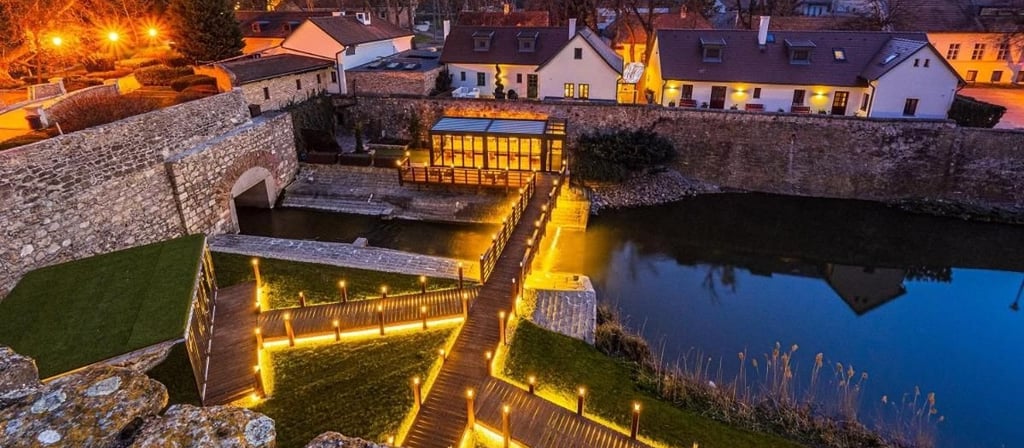 Situated beneath the historic castle, within Platán Manor, the décor is elegant yet unobtrusive. Barrel-vaulted ceilings of the cellar, exposed stone, and polished wood surfaces create a timeless atmosphere that feels both grand and home‑grown. Soft lighting and tasteful furnishings extend the sense of refined comfort. The transitions between spaces—lakeside welcome room to vaulted cellar salon—enhance the narrative rhythm of the evening. Each environment frames the food, reinforcing the connection between history, nature, and fine dining artistry without luxury overwhelming simplicity.